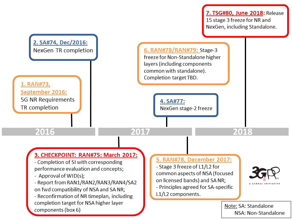 However, 3GPP said that specifications for standalone and non-standalone options would instead be frozen by June 2018.