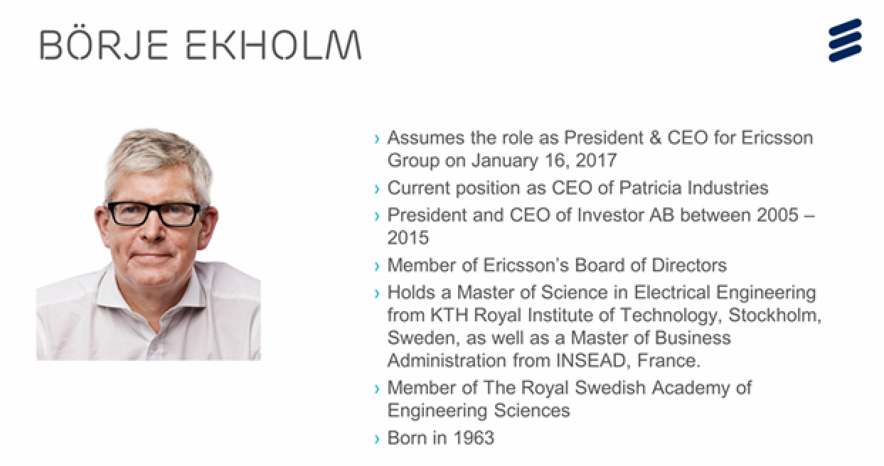 With the news that Ericsson will have a new CEO from January 2017, here are some very quick impressions from Borje Ekholm’s short introductory media and analyst call.