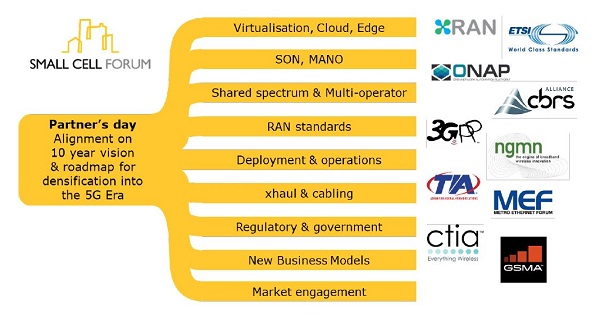A recent meeting hosted by the Small Cell Forum brought together 10 other industry organisations: 3GPP, CBRS Alliance, CTIA, ETSI (MEC and NFV ISGs), GSMA, NGMN, ONAP, TIA, XRAN Forum and MEF, to find “alignment” on 5G issues as they relate to small cells and network densification.