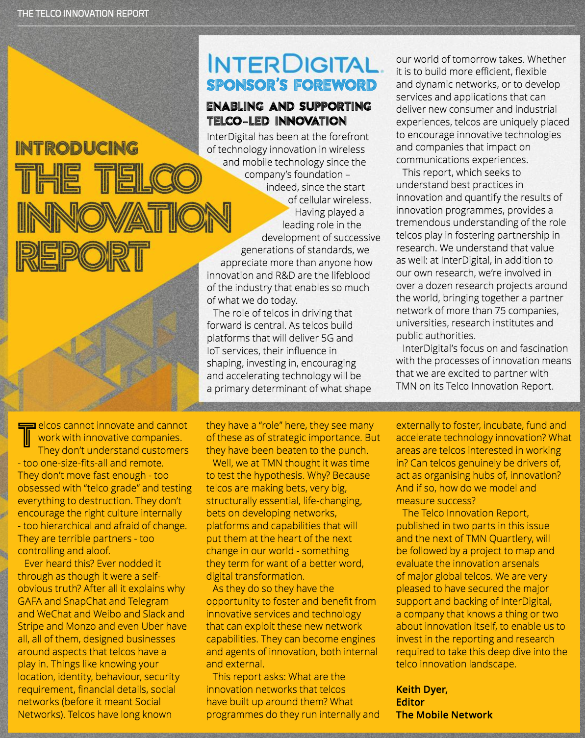The article is part of an ongoing investigation into Telco Innovation that TMN is undertaking, with the support of InterDigital. The report features interviews with leading operators about their innovation strategies, and you can read Part I and Part II of those reports now.